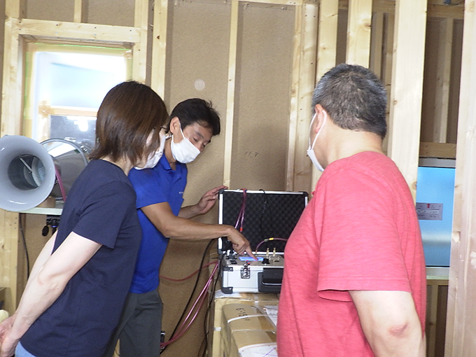 弊社では一棟一棟測定し、かつ全てのお施主様に測定の 立ち合いをお願いしています。